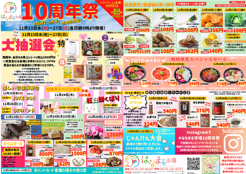 感謝の気持ちを込めて、はなまる市場では11月23日(祝)午前9時より4周年祭を開催!